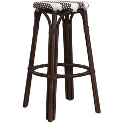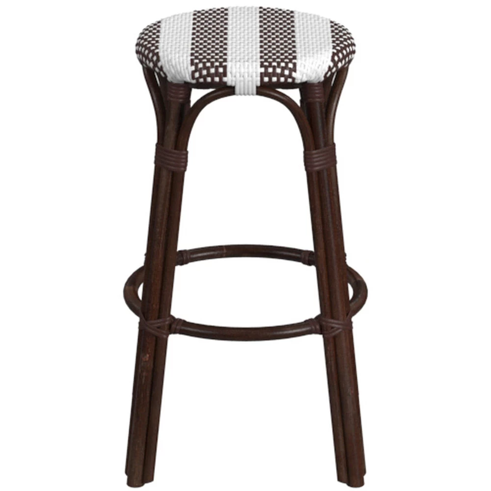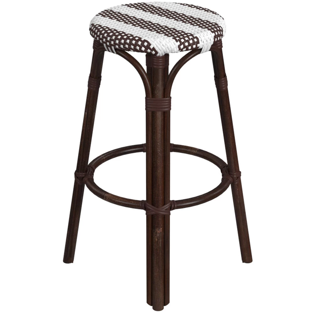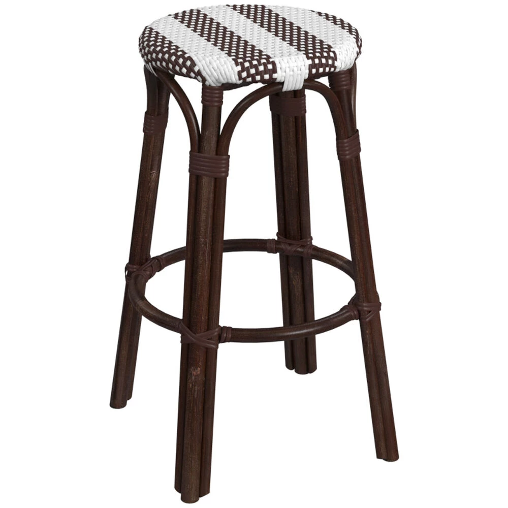 Tobias Round Rattan 30″ Bar Stool in White and Brown Stripe