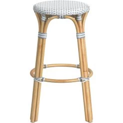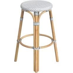 Tobias Round Rattan 30″ Bar Stool in White and Sky Blue Dot
