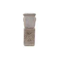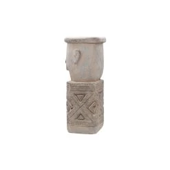 This 20? vintage stone tribe figure puts a favorite planting up on a tribal-inspired pedestal. Like something one would expect to find in an Incan ruin, this totemic, stone gray planter features primitive yet intricate carvings. A great choice for a history buff’s garden or patio.