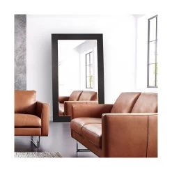 The Wilde Mirror has a commanding presence. It features a large, oversized rectangular frame that is finished in a black faux leather with ostrich skin texture. Instantly make any room larger simply by adding this mirror to it. This simple yet stunning piece would be a great addition to any room. It will make quite a statement with its 84″height. While the Wilde Mirror is the perfect floor mirror, it also comes with D rings so it is ready to hang right out of the box. Since it is such a large piece, we recommend professional assistance when hanging this mirror. It also comes with security hardware to affix to the wall when using as a floor mirror.
