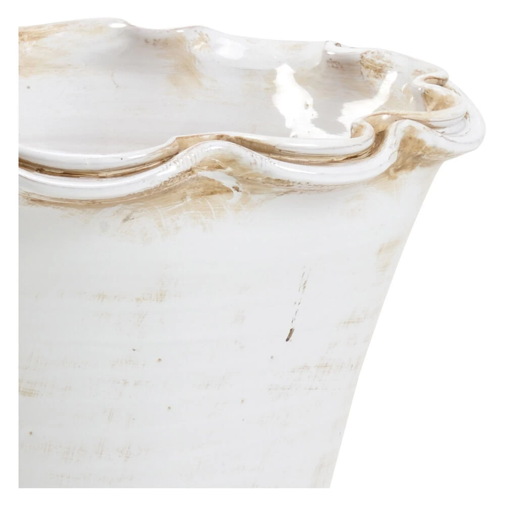 IMPRUNETA FLUTED POT (SM). WHITE GLAZED,FLUTED,TUSCAN PLANTER HANDMADE IN IMPRUMETA, ITALY
