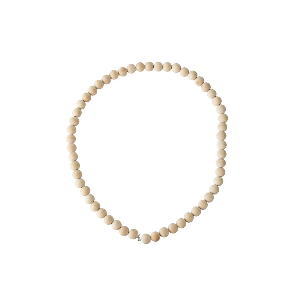 Carved from pine wood, this 25″ thread of sphere beads make an easy and artful addition to a casual coffee table display or hanging as a garland. The long string of pine wood beads boast subtle, simple appeal. The beads can match a wide variety of rustic farmhouse decor.